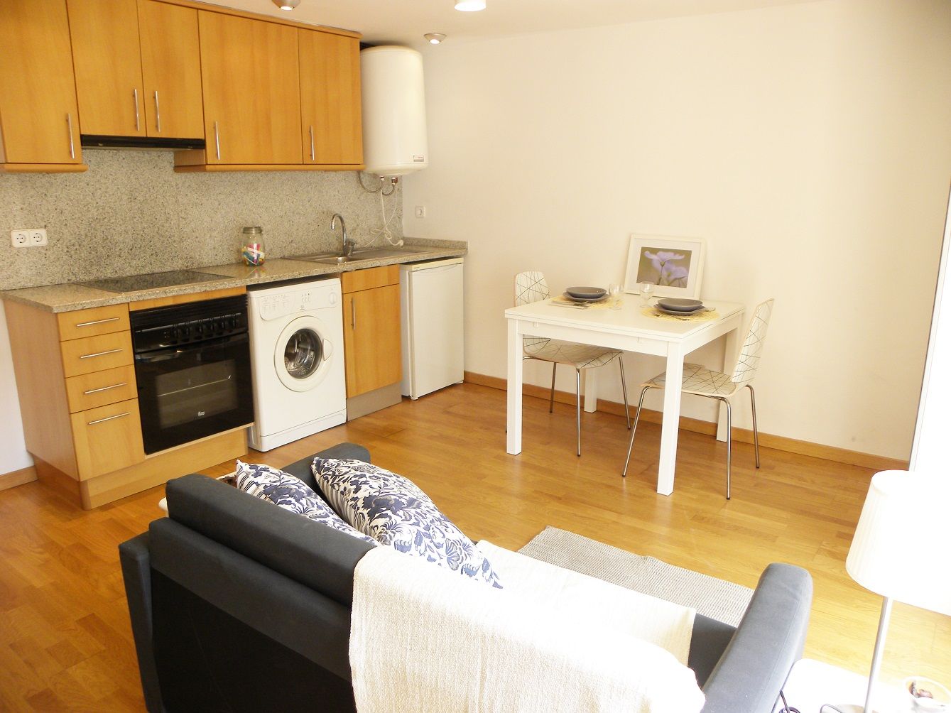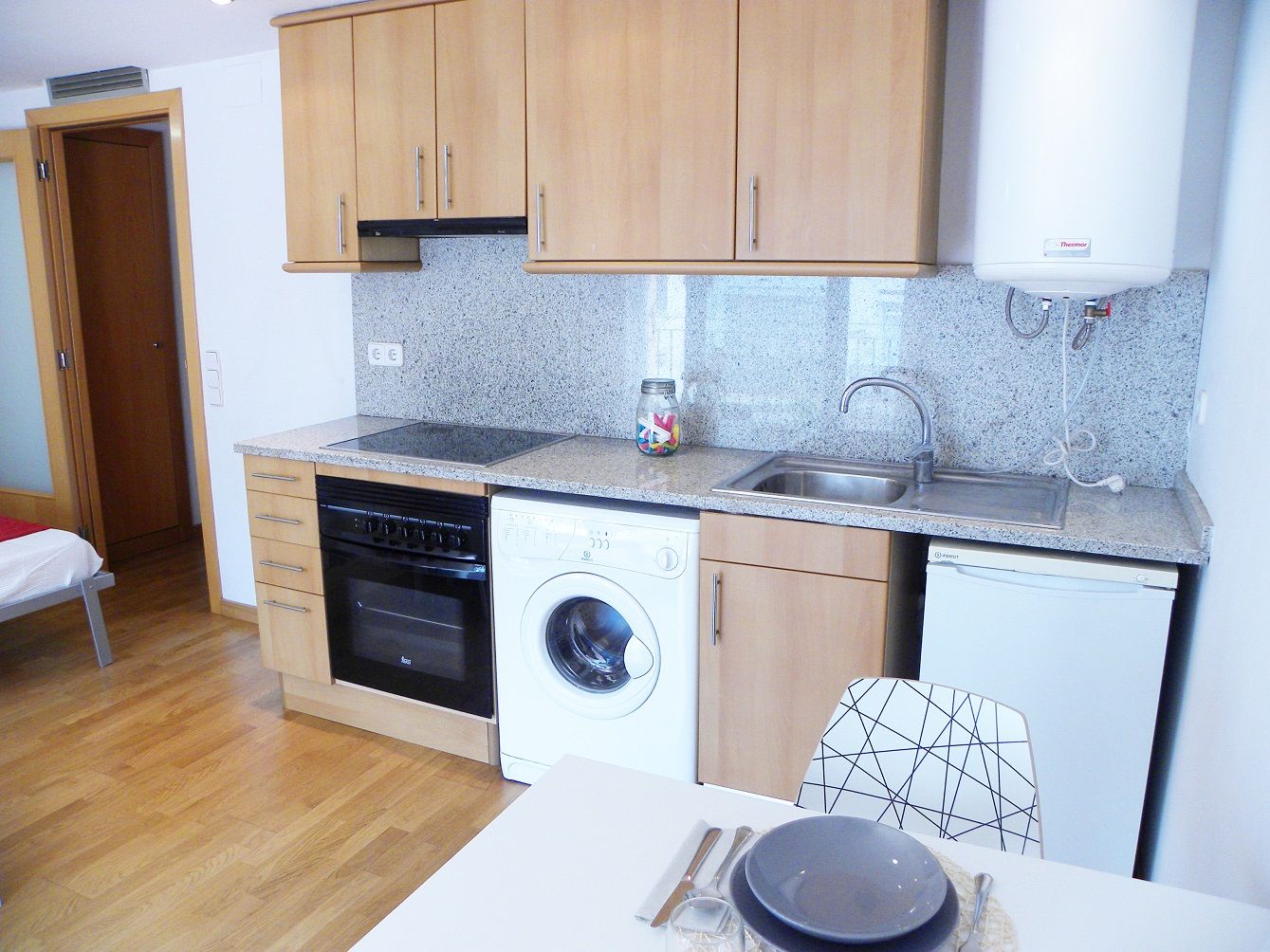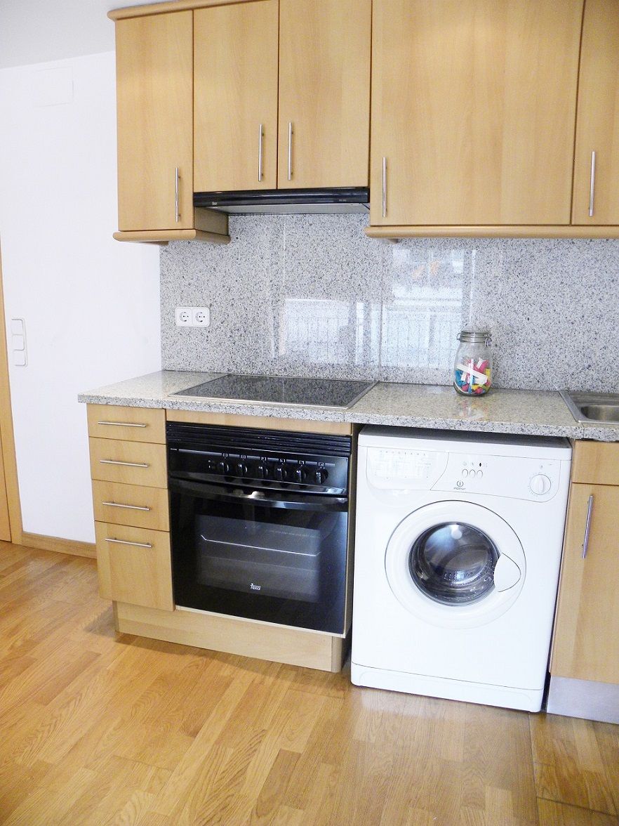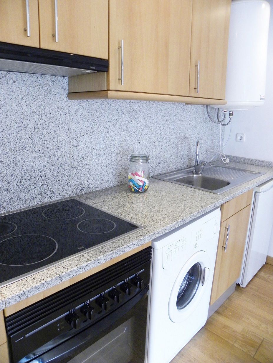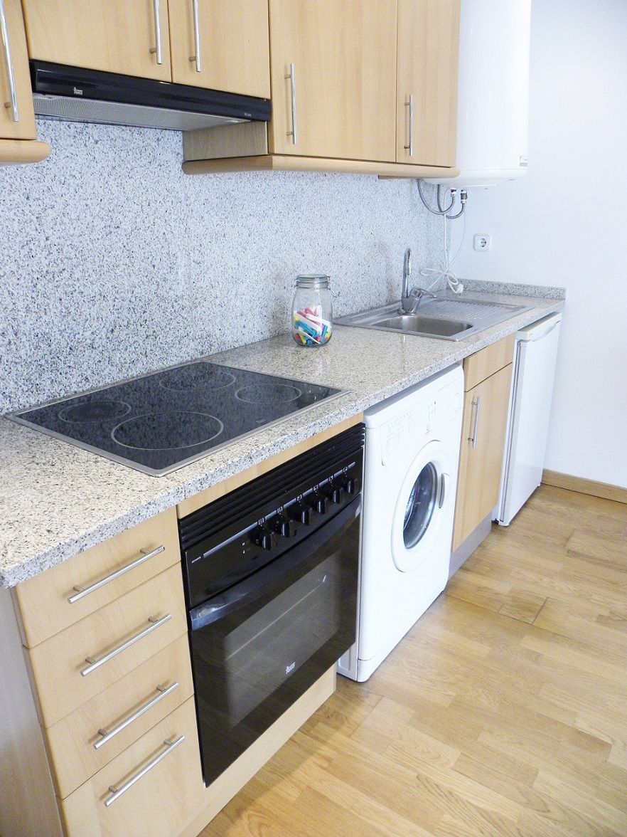 Nevera, vitrocerámica (4 fuegos), lavadora, horno, termo eléctrico, campana extractora.